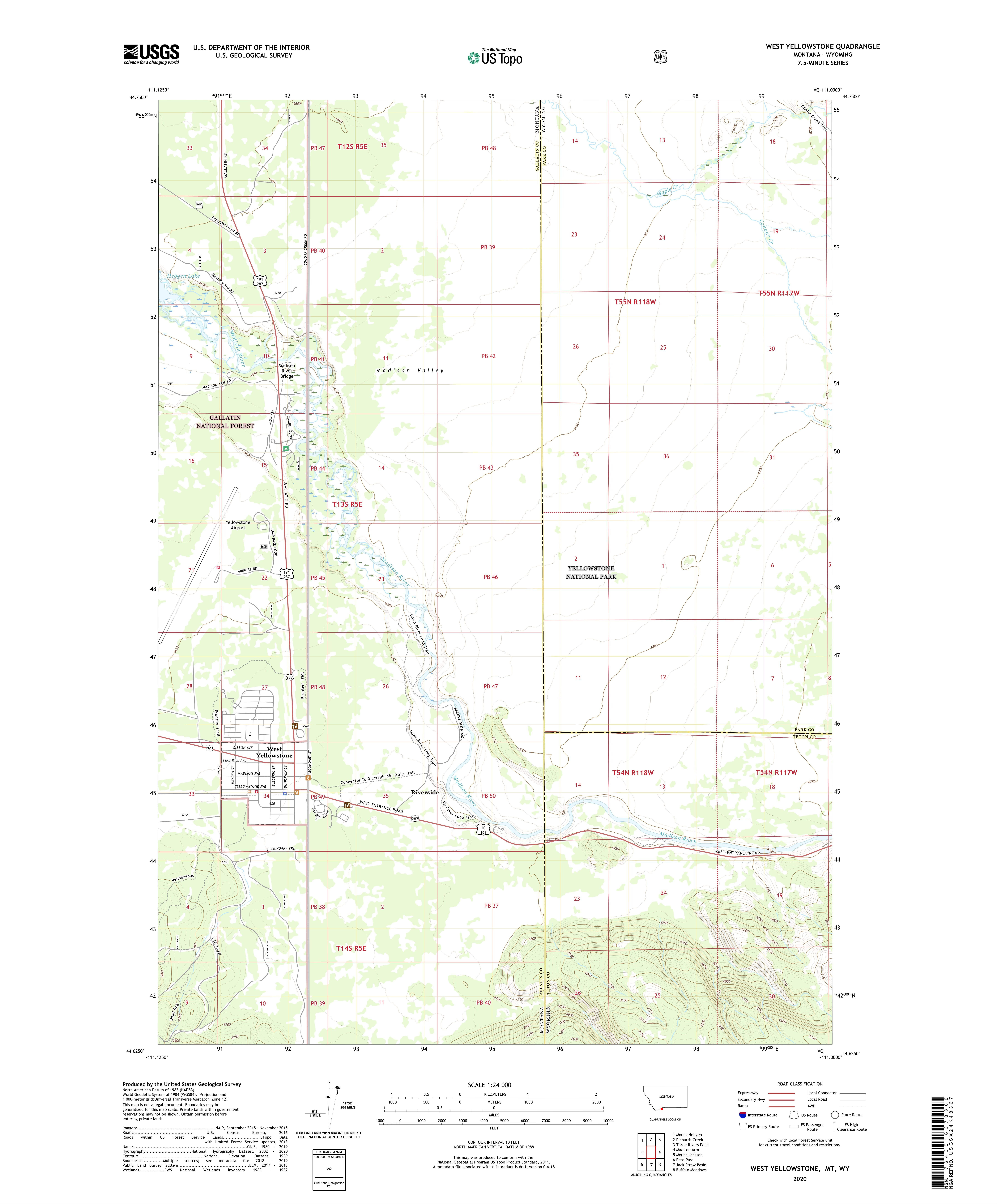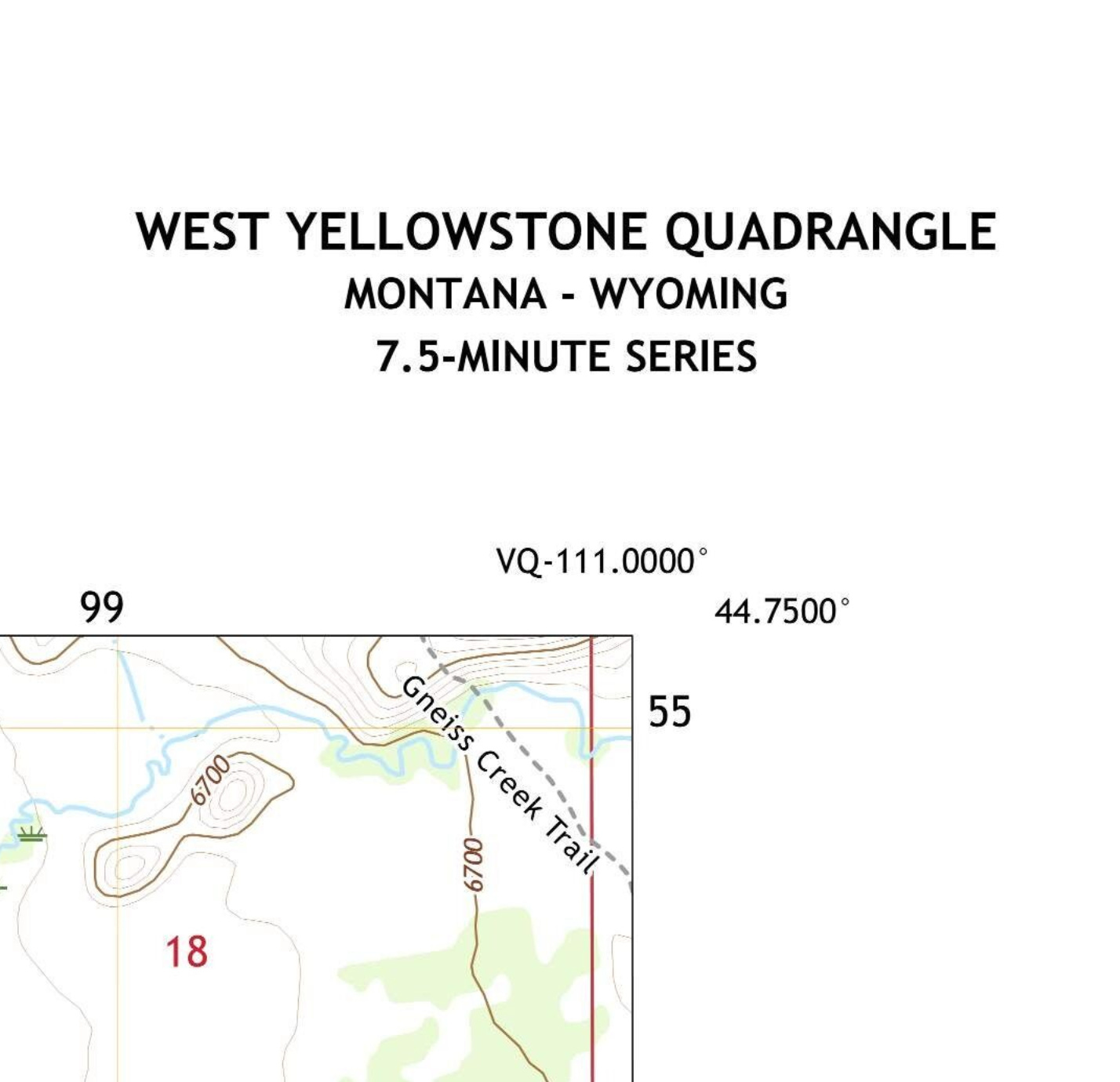 Montana - Wyoming: These are the states that the West Yellowstone Quadrangle straddles. Including the names of the states helps users quickly identify the general region the map pertains to and is essential for orienting the map within a larger national context.